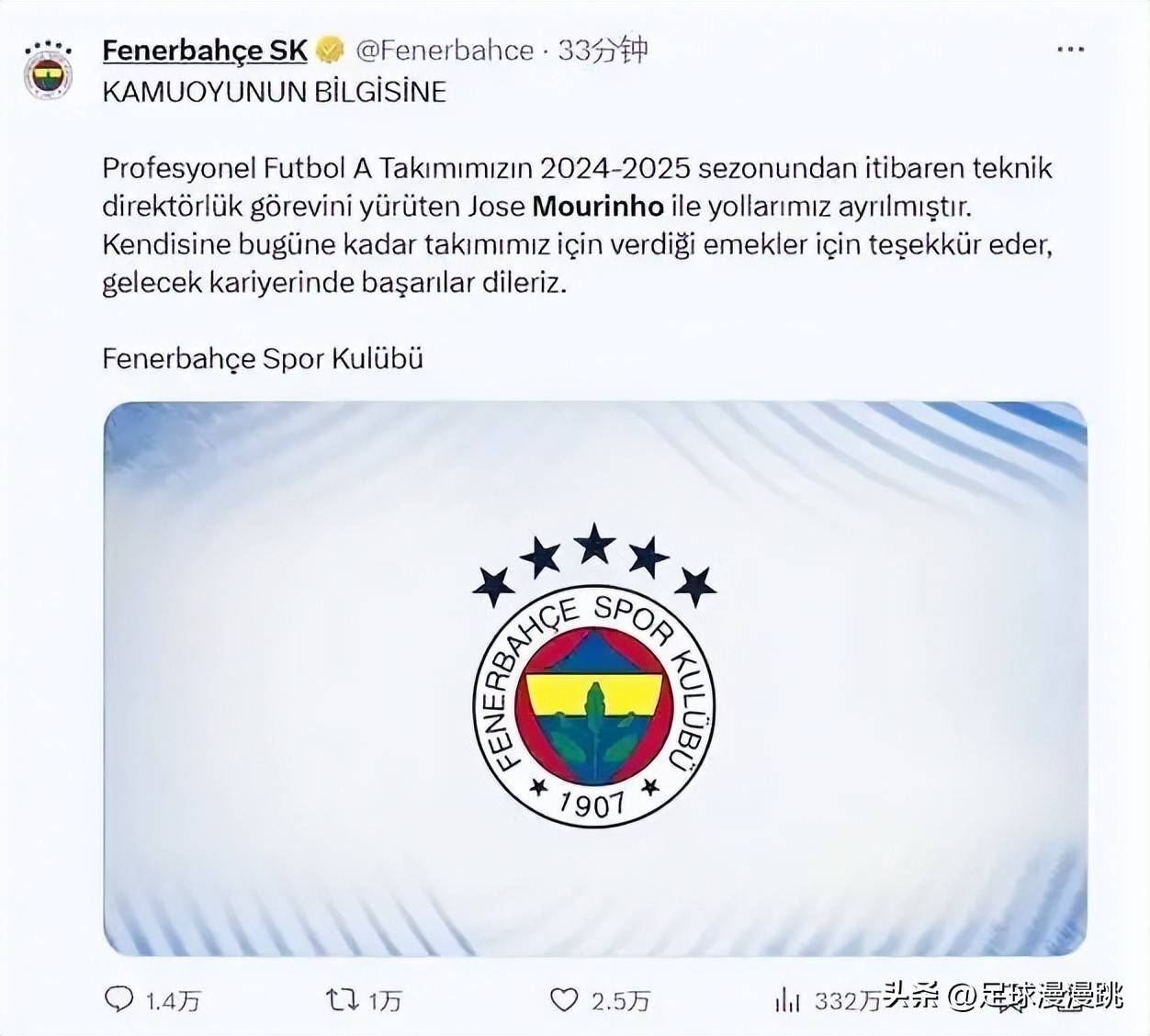 官宣!穆里尼奥下课,索尔斯克亚解约!欧战出局2大土超豪门真狠